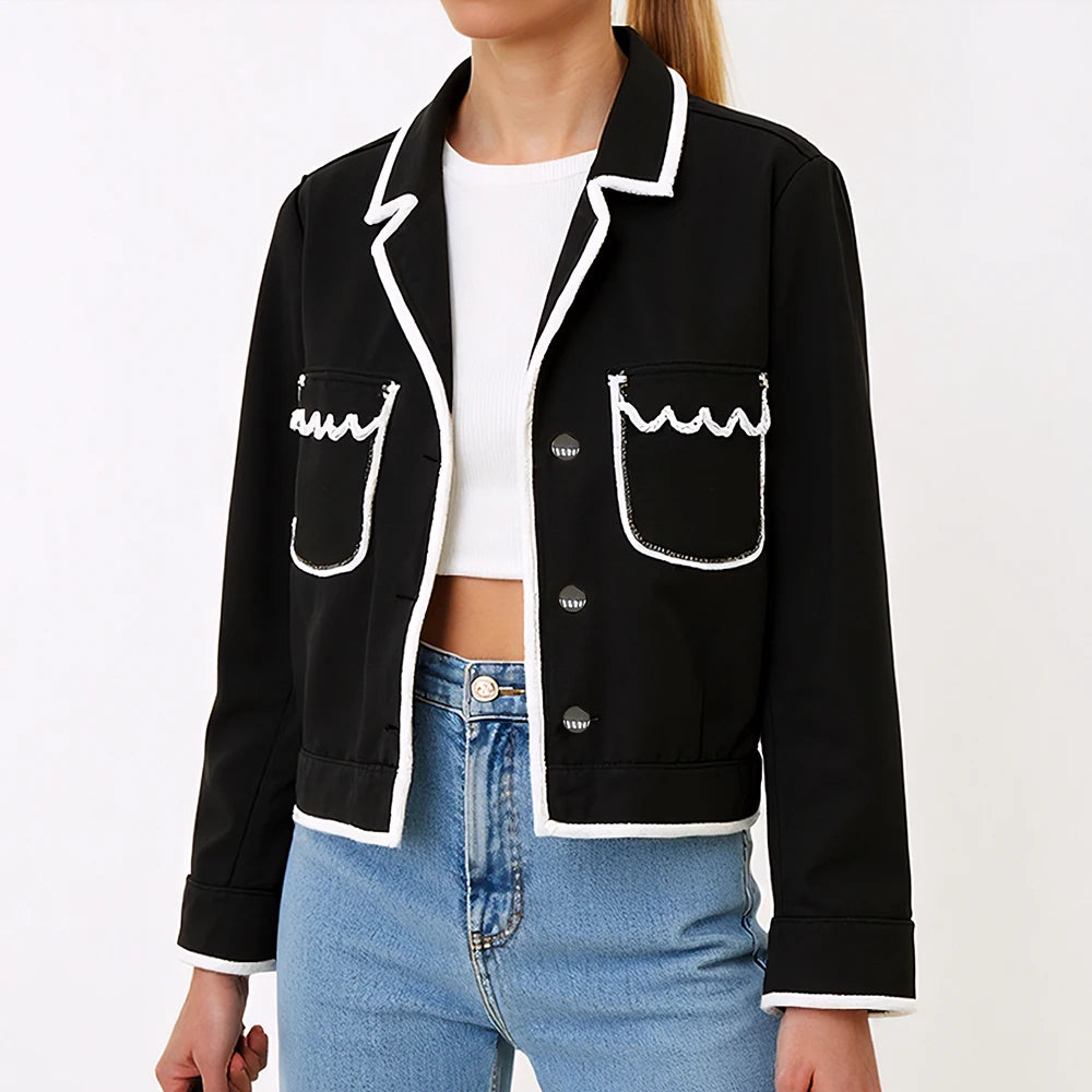 Long Sleeve Twill Slim Work Blazer with Pockets