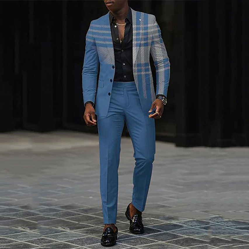 Men's Business Casual Plaid Lapel Collar Two Button Chest Pocket Blazer