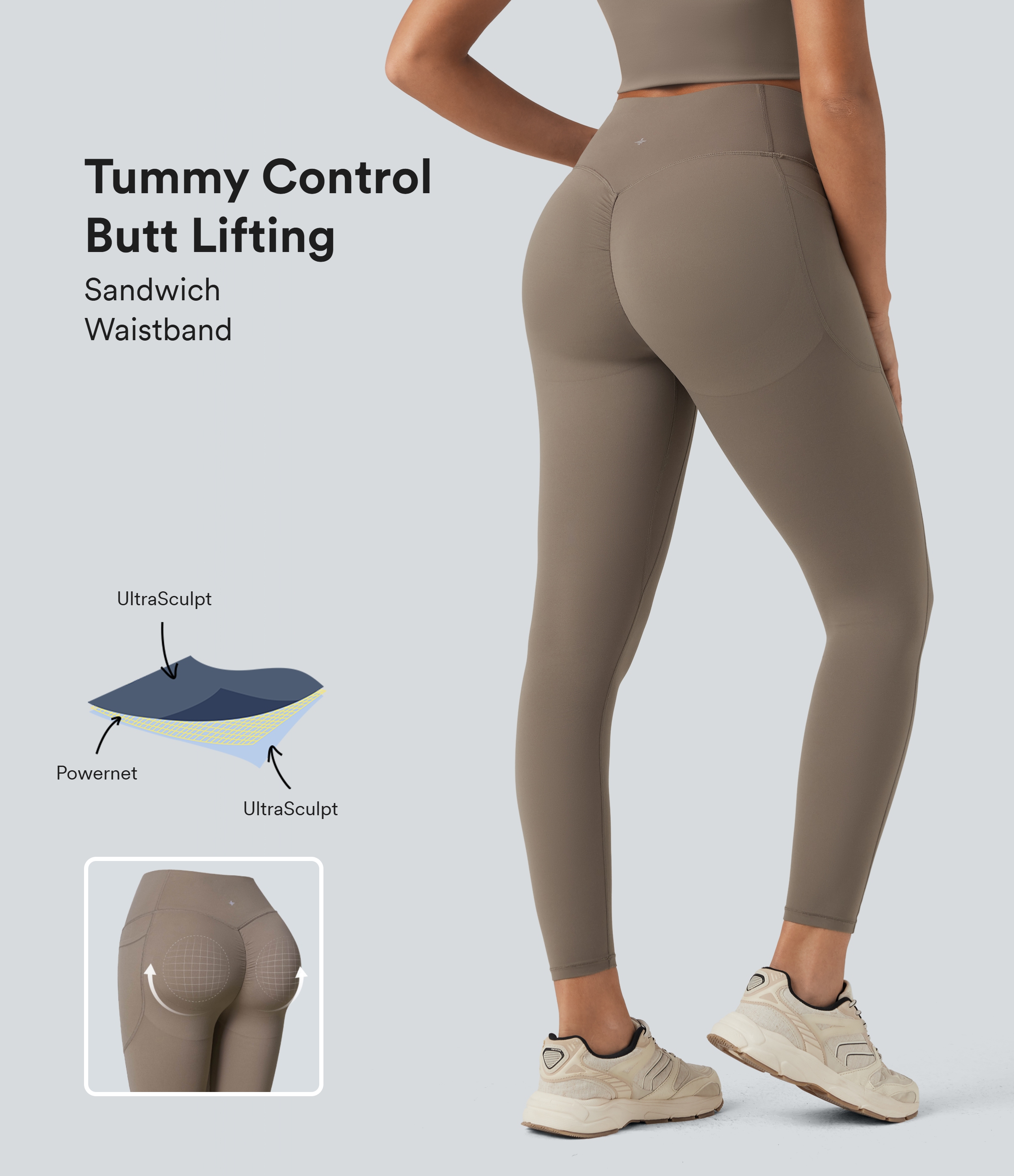 High Waisted Tummy Control Scrunch Shaping Yoga Leggings with Pockets