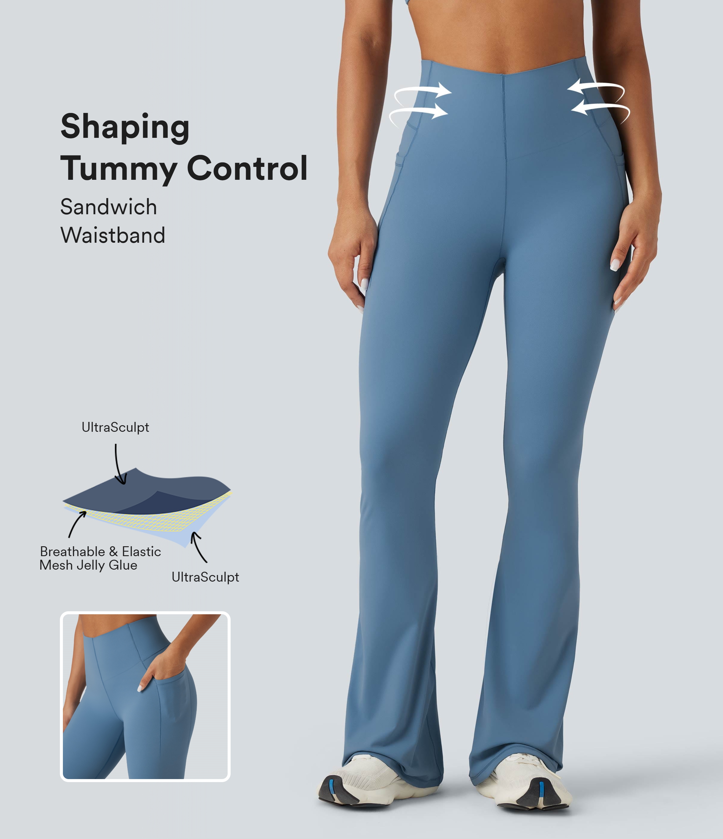 High Waisted Tummy Control Bootcut Training Leggings with Pockets