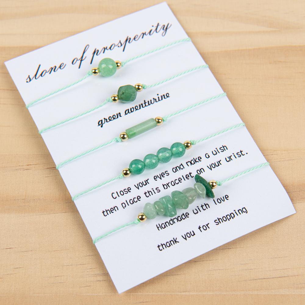 5 Pcs Green Dong ling Natural Adjustable Braided Bracelet, Jewelry Gift For Your Girlfriend On Valentine's Day, Includes Card Descriptions, Elegant Handcrafted Natural Stone Bead Crystal Bracelet Prosperity Handmade Wish