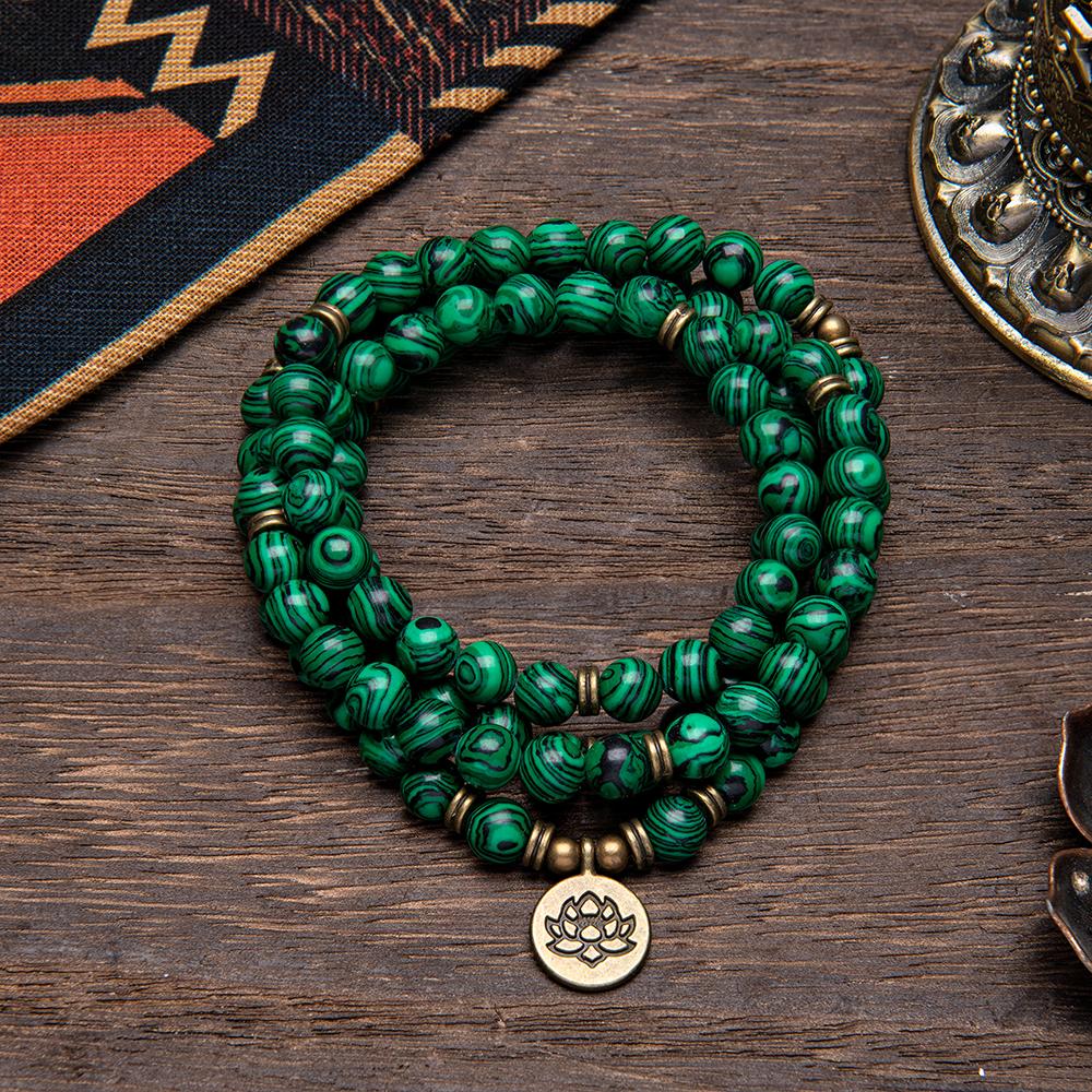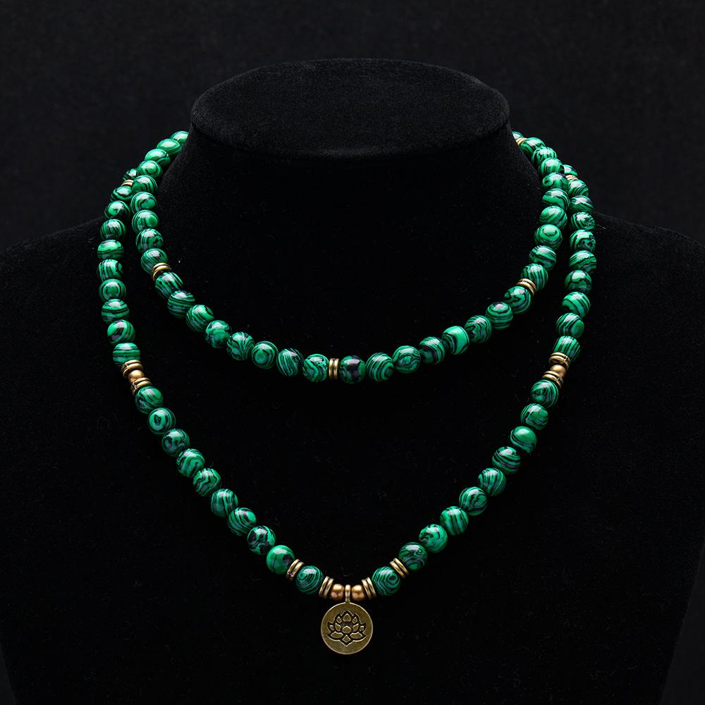 8mm Green Malachite Healing Crystal Stone 108 Mala Beads Money Attraction Bracelet Long Beaded Wrap Bracelets Genuine Gemstone Mala Prayer Beads Lotus Buddha Charm Yoga Meditation Necklace Jewelry Necklace for Ideal Gift , Elegant with Lotus Pendant