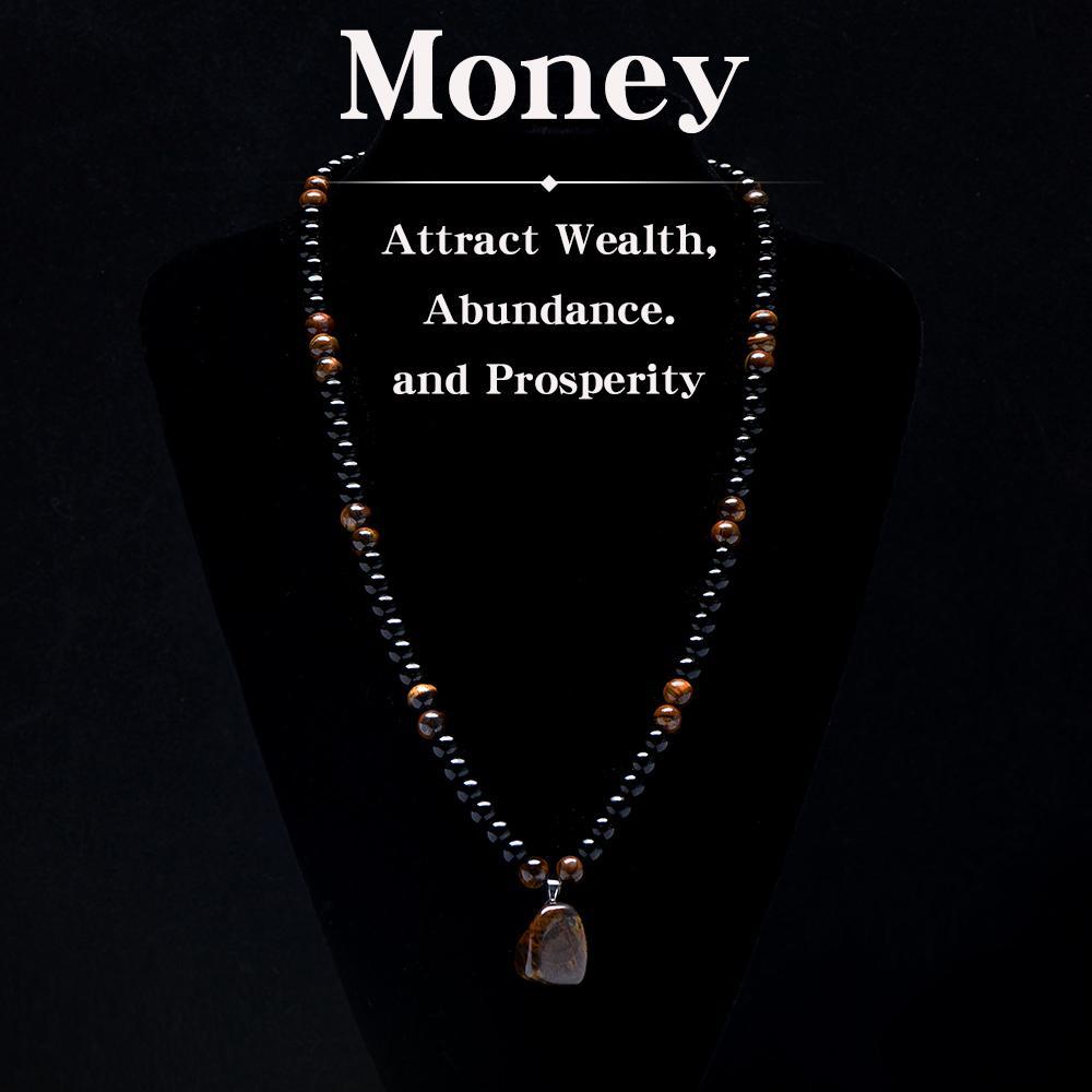Money Attraction Necklace with Tiger Eye Pendant Healing Crystal Stone ,Obsidian,Anniversary, Vacation &Theme Parties Jewelry Charms Abundance Crystal bracelet,Long Chain,Sweater chain,Ideal Gift Jewelry for Men and Women