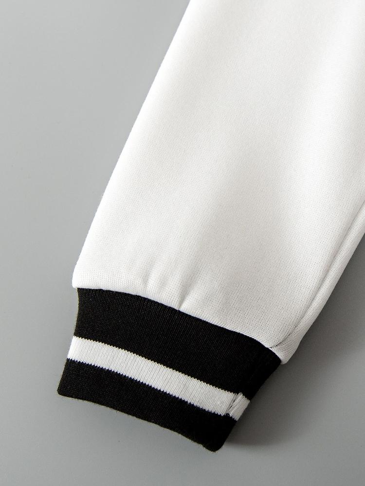 【Unique Graphic】: Featuring a creative cartoon bear pattern on the back, this jacket stands out from typical designs. 【Seasonal Versatility】: Crafted for spring and fall, it is suitable for varying temperatures, ensuring warmth in transitional weather. 【Moderate Thickness】: Made with moderately thick fabric, providing a balanced warmth without feeling bulky or heavy. 【Fitted Cut】: The fitted silhouette offers a contemporary look, combining casual wear with an athletic appeal. 【Knit Fabric】: Constructed from high-quality knit fabric, it ensures flexibility and a soft touch against the skin.