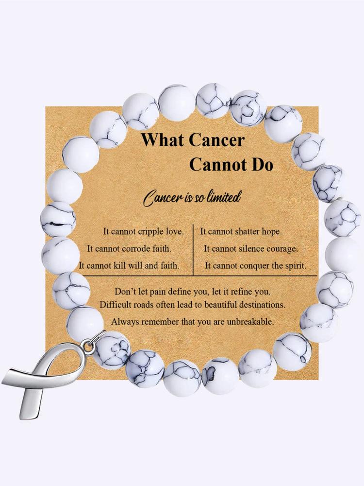【Natural Stones】: Crafted from healing natural stones, these beads symbolize strength and courage in the face of cancer. 【Breast Cancer Awareness】: Each bracelet serves as a reminder of the fight against breast cancer, promoting awareness and support. 【Inspirational Gift】: A thoughtful gift for cancer survivors, offering encouragement and hope to loved ones battling the illness. 【Unisex Appeal】: Designed for both men and women, making it a perfect gift for anyone affected by cancer. 【All-Season Wear】: With no seasonal restrictions, this bracelet can be worn year-round, adding meaning to any outfit.