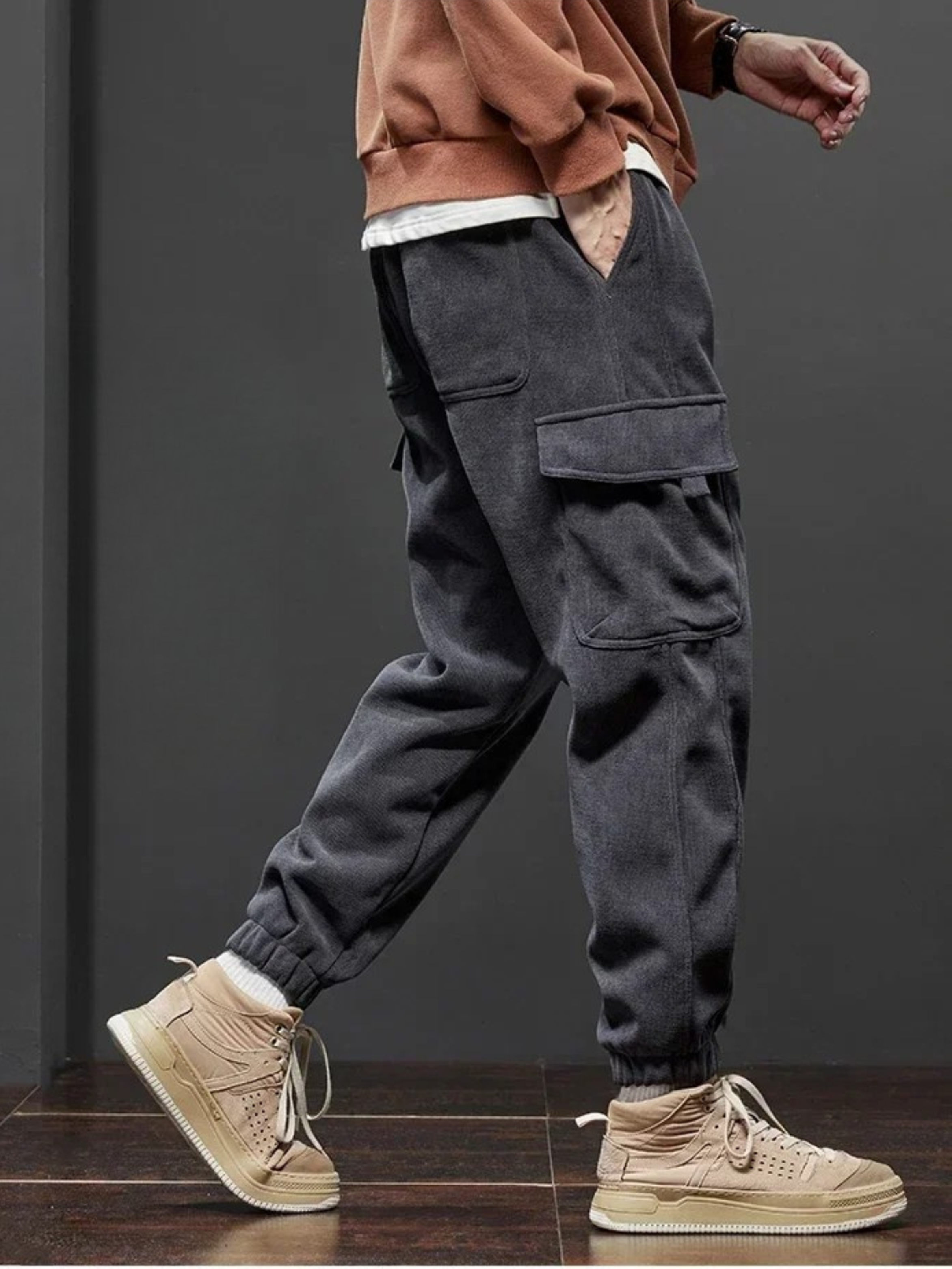 Designed for style, comfort, and utility, these tactical cargo joggers are crafted from a soft, breathable cotton-blend with a relaxed, tapered fit for all-day wear. Deep, secure pockets offer storage without bulk, while the elastic cuffs and adjustable drawstring waist ensure the perfect fit—highlighting your sneakers effortlessly.
