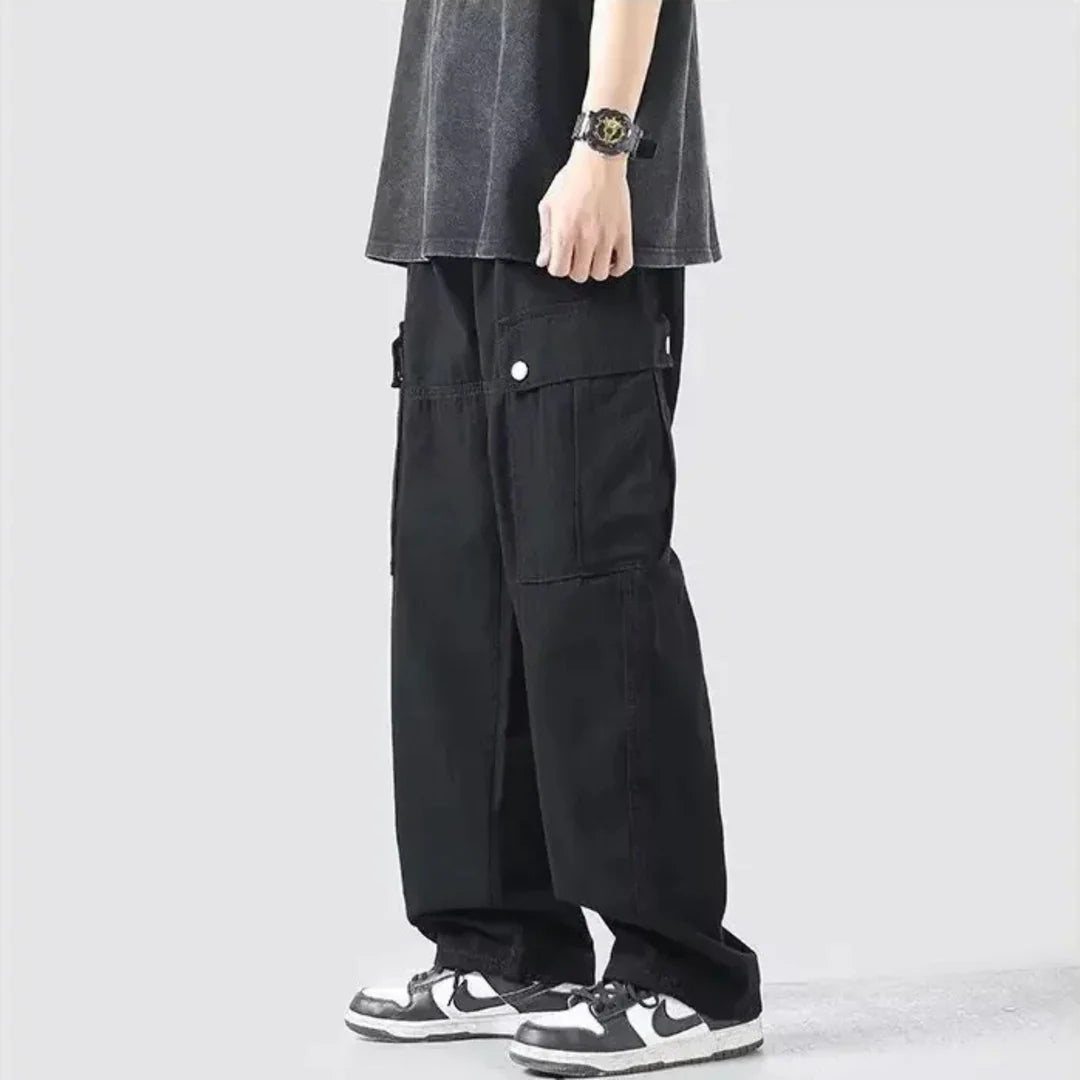 Industrial grit, street-built swagger. These wide-leg cargos stack clean with heavyweight cotton, oversized snap pockets, and reinforced panels. Precision stitch-work and metal snaps bring the detail. From curb to studio, these cargos are your all-day, everyday flex piece.
