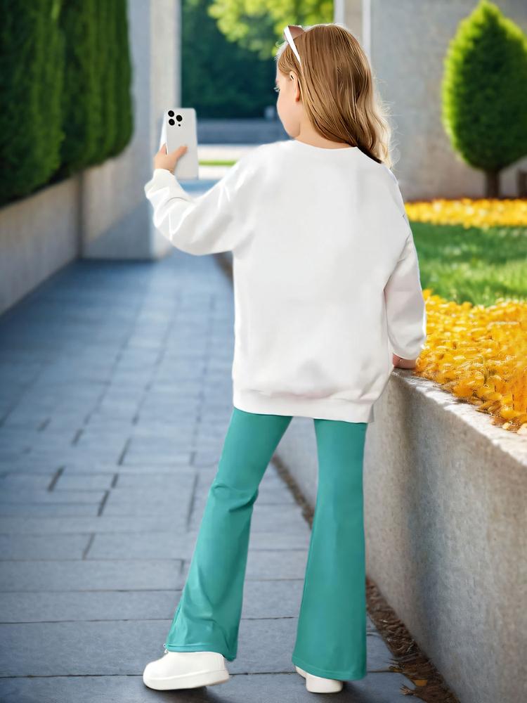Girls' Cartoon Print Sweatshirt & Elastic Leggings Set, Casual Fitted for Spring & Fall, Kids Outdoor Indoor Activities