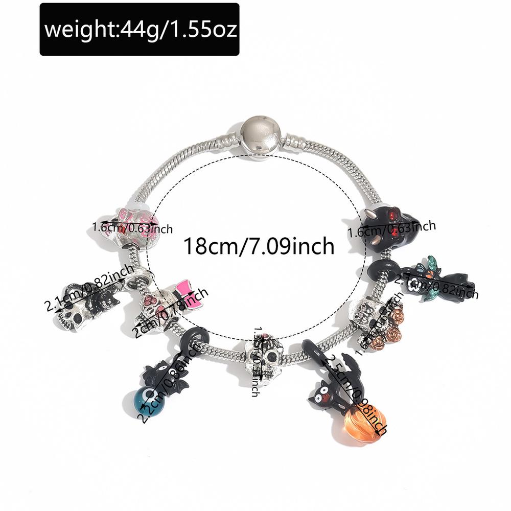 Halloween Ghost Grim Reaper Bracelet Niche Dark Metal Punk Unisex Student Accessory with Skull Charms and Colorful Beads