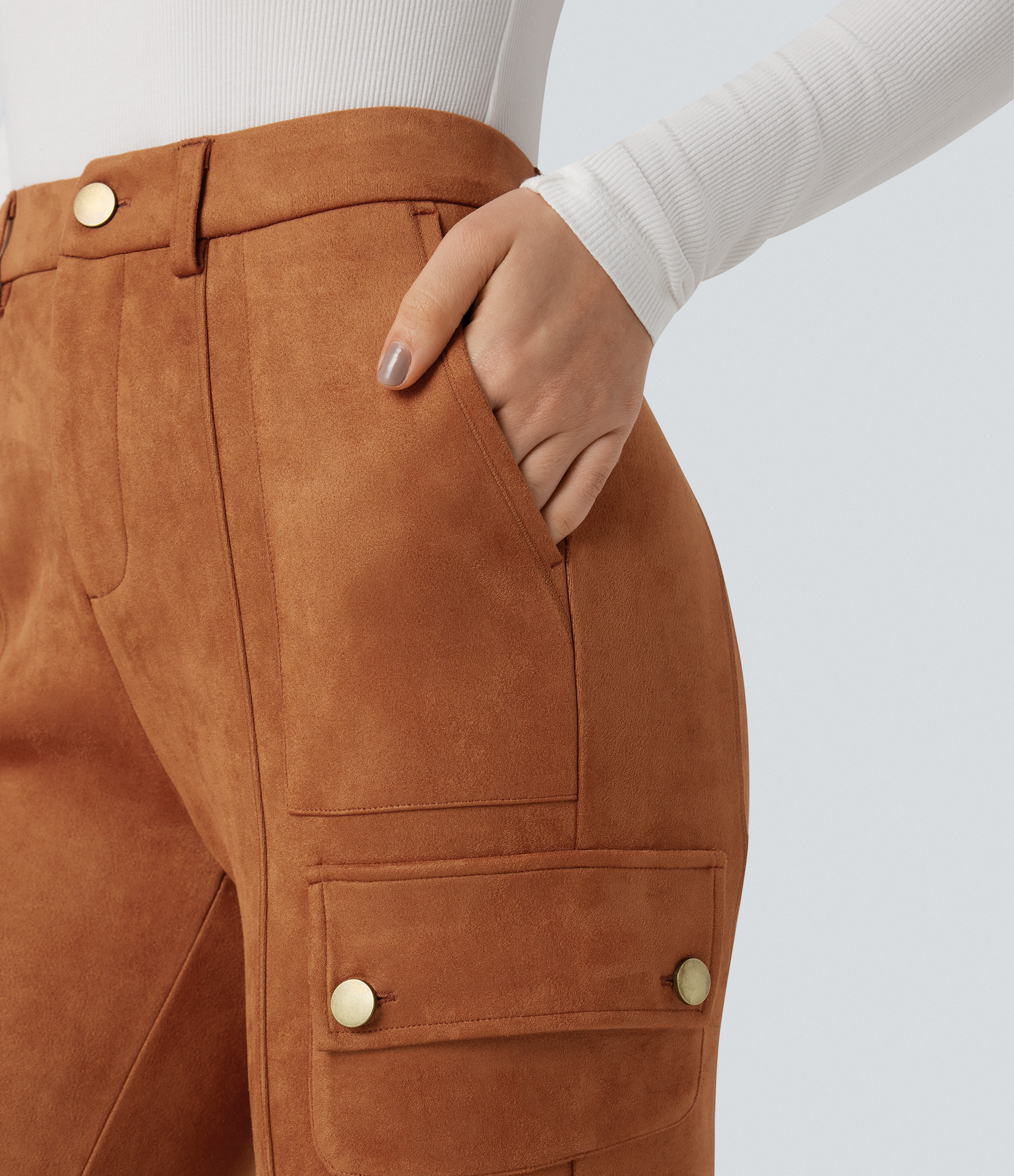 High Waisted Suede Equestrian Cargo Pants with Pockets