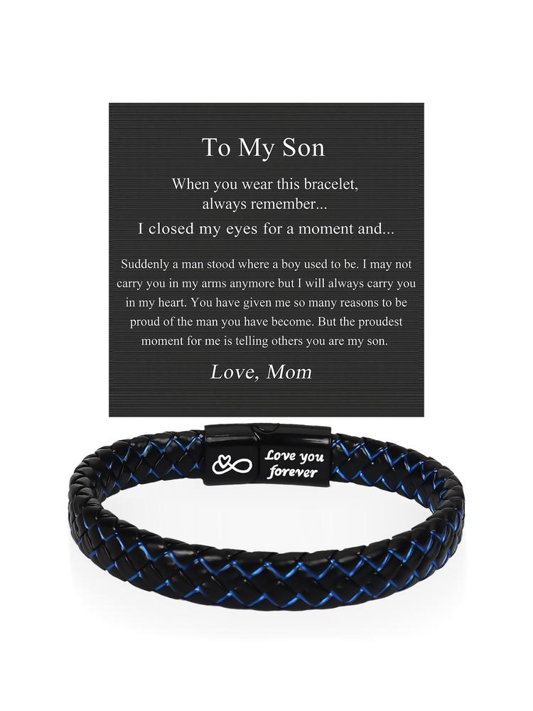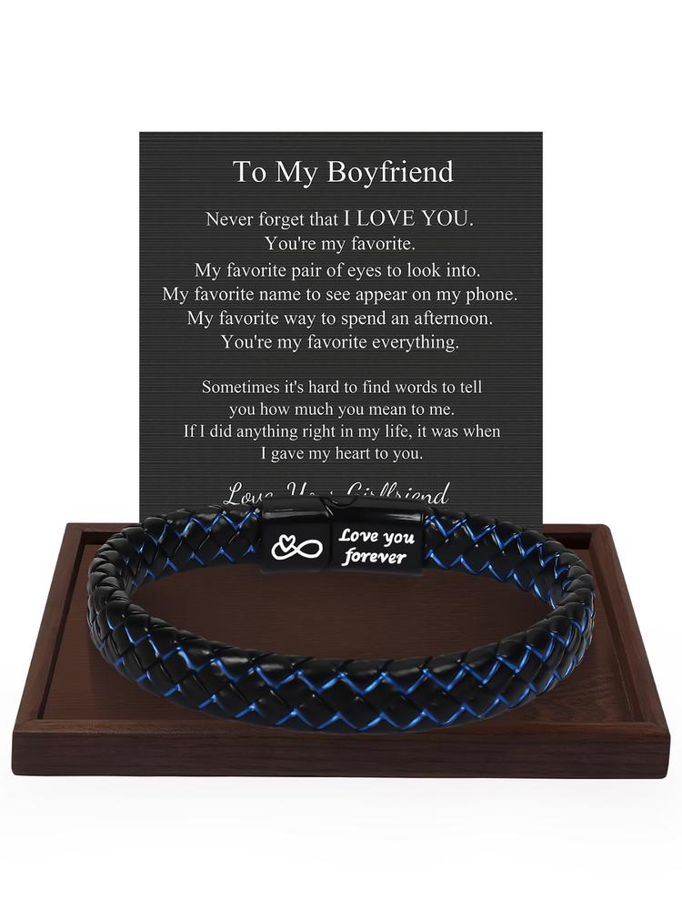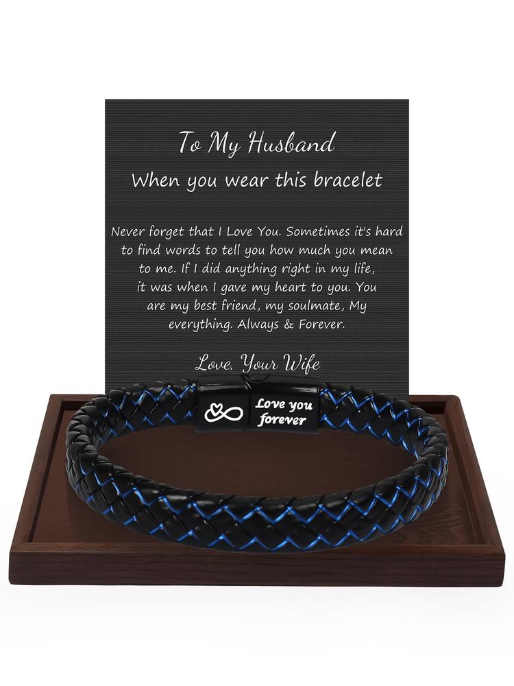 【Unique Gift Idea】: This leather bracelet is a thoughtful gift for various occasions, showing appreciation for fathers and husbands alike. 【Quality Materials】: Crafted from durable PVC and leather, ensuring longevity and a pleasing look for everyday wear. 【Inclusive Occasions】: Suitable for Christmas, Valentine's Day, birthdays, and Father's Day, making it a versatile gifting option. 【Personalized Touch】: Comes with a gift card, allowing you to add a personal message to enhance the gifting experience. 【Safety Assurance】: Features no choking hazard warning, making it a safe choice for all ages when given as a gift.