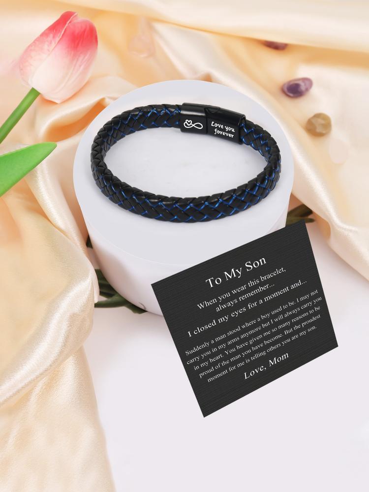 Men's Vintage Synthetic Leather Bracelet, with Gift Card, Fashionable Knotted Bracelet for Husband from Wife, Birthday Gifts for Son from Mom