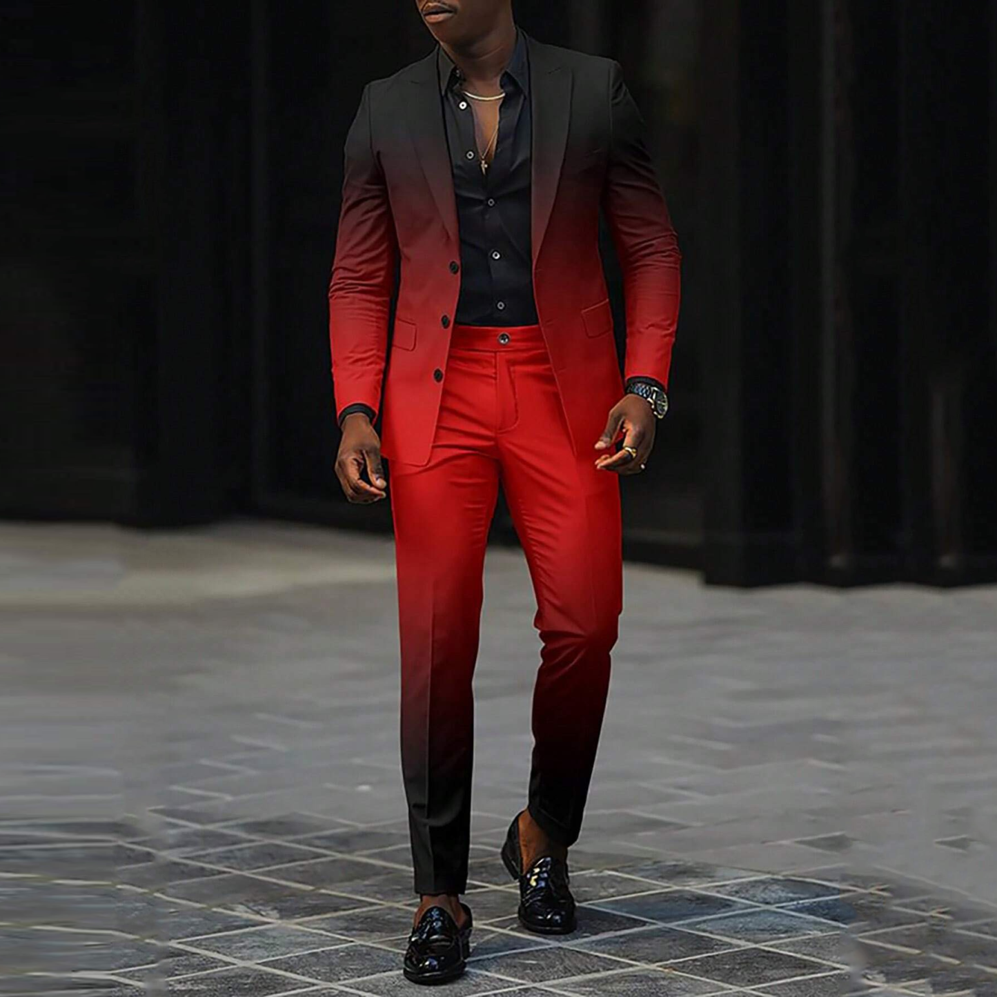 Men's Business Ombre Peak Lapel Blazer & Straight Pants 2Pcs Set