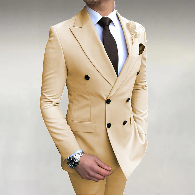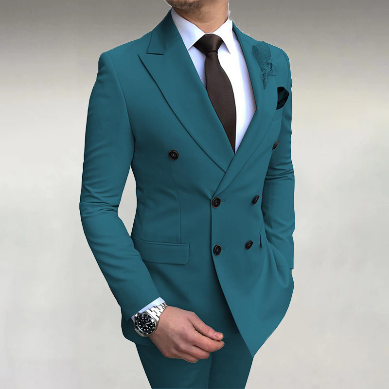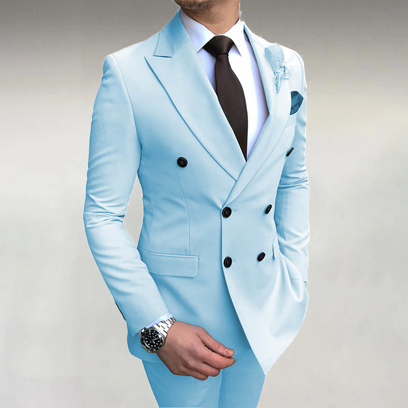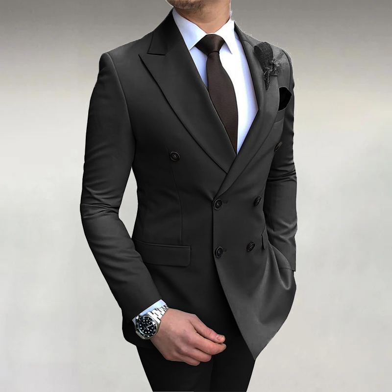 Men's Business Solid Double-Breasted Pocket Lapel Collar Lapel Blazer& Pants 2Pcs Set