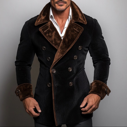 Men's Corduroy Lapel Collar Double Breasted Jacket
