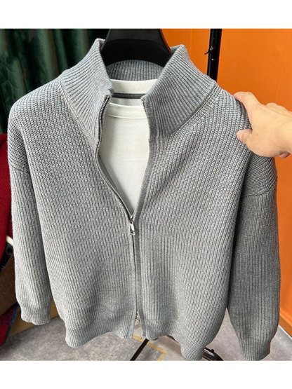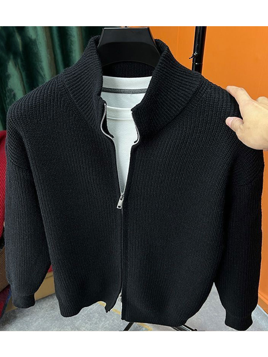 Men's Knitted Solid Color Cardigan Zipper Sweater Jacket