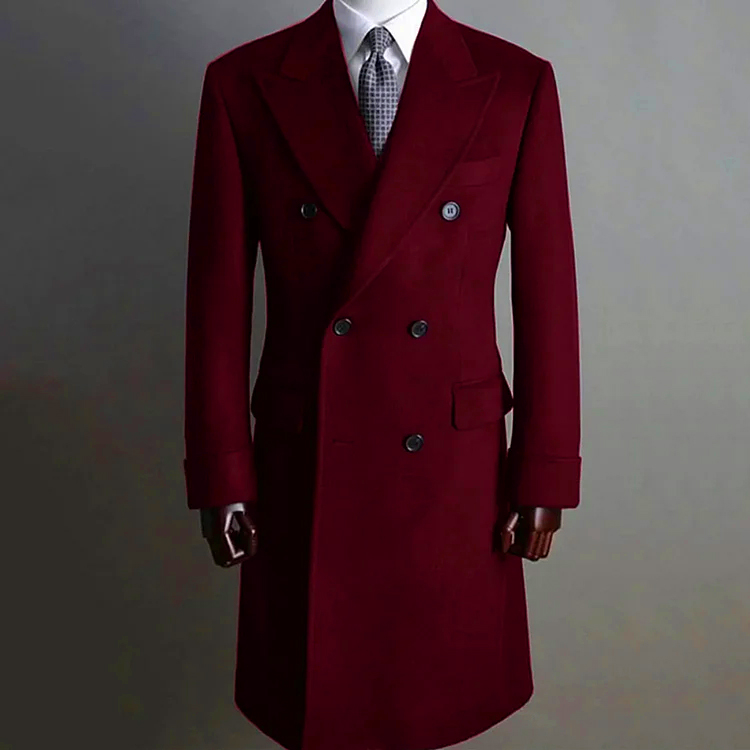 Men's Winter Coat Casual Solid Lapel Collar Double-Breasted Long Sleeve Mid-Length Fur Coats