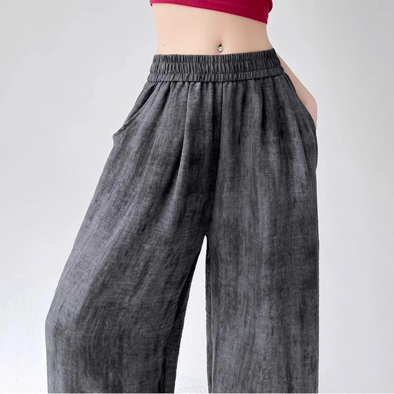 Crafted from a premium linen-blend, these wide-leg pants cascade with a weightless drape, creating a refined silhouette. The wide-leg cut creates an elongated effect, while the contoured elastic waistband ensures a smooth, impeccable fit. Lightweight yet structured, they provide breathable comfort while maintaining an effortlessly sophisticated allure.