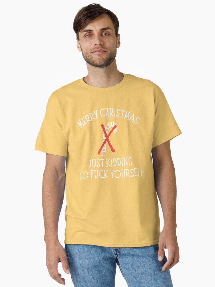 Christmas Humor. Rude, Offensive, Inappropriate Christmas Card. Merry Christmas, Just Kidding Go Fuck Yourself Classic T-Shirt