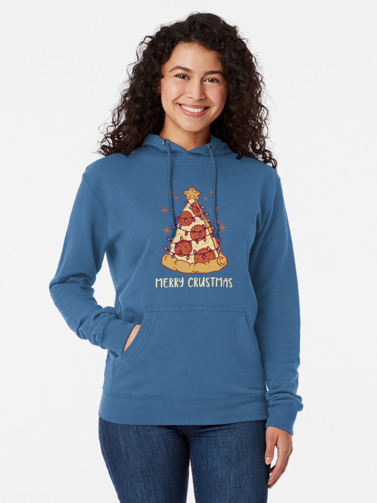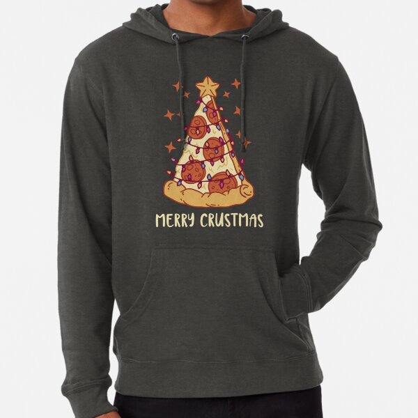 Merry Crustmas Christmas Tree Pizza Lightweight Hoodie