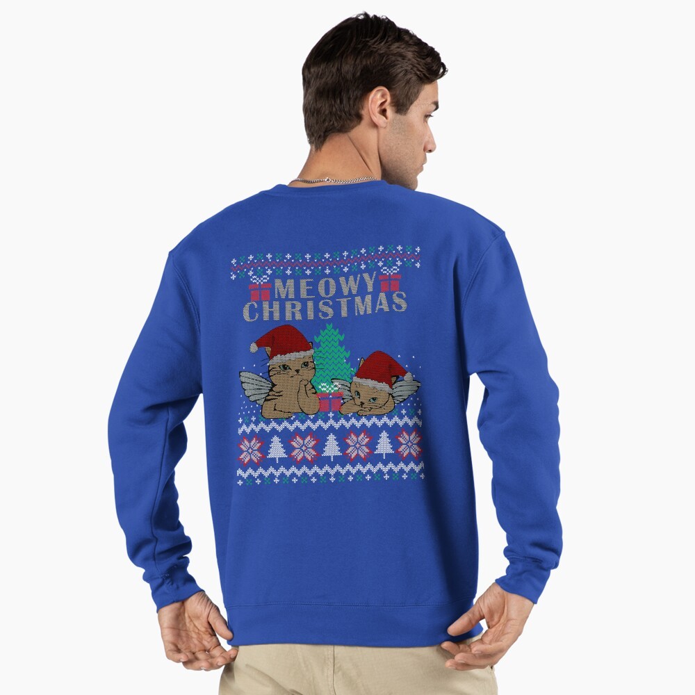 meowy christmas,,ugly christmas Pullover Sweatshirt
