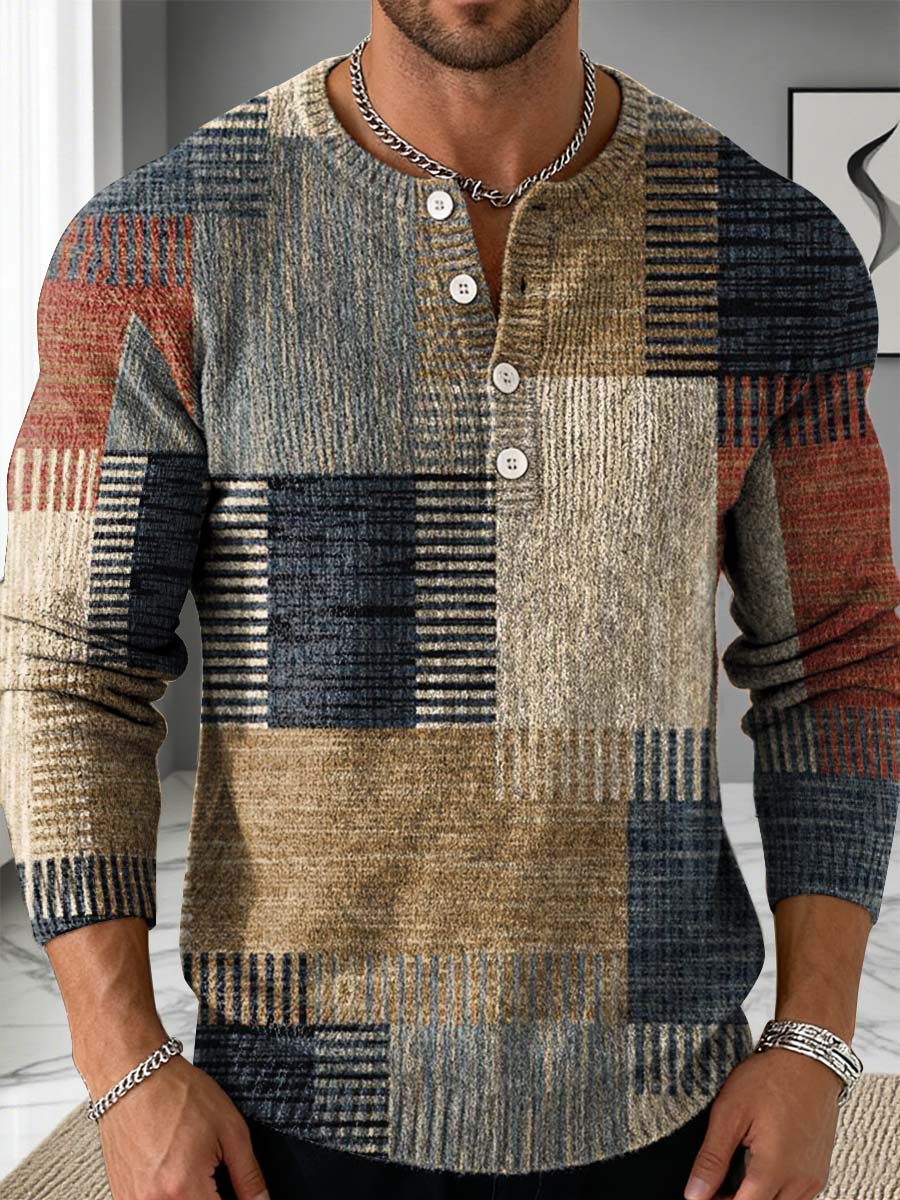 Vintage Stitching Art Print Buttoned Cardigan Sweater