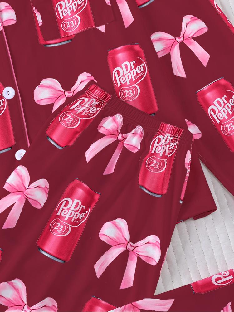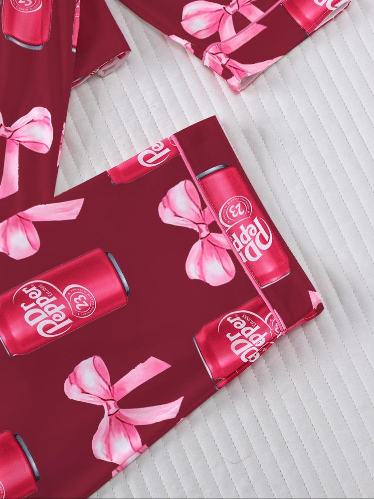 【Unique Print】: Featuring a playful beverage and bow tie print, this sleepwear showcases a distinctive design that stands out. 【Soft Fabric】: Constructed from a soft material, the long shirt and trousers ensure a gentle touch against the skin for evening relaxation. 【Fitted Look】: The fitted structure of the set enhances the silhouette while providing a comfortable fit, suitable for lounging at home. 【Seasonal Wear】: Designed for Fall and Winter, this pajama set offers warmth and coziness during the colder months. 【Convenient Style】: The loose elastic trousers provide ease of movement, making it a practical choice for both nighttime and home activities.