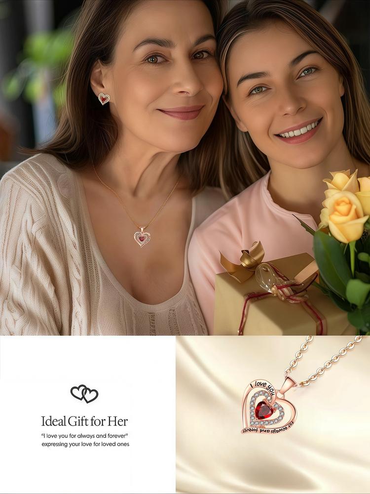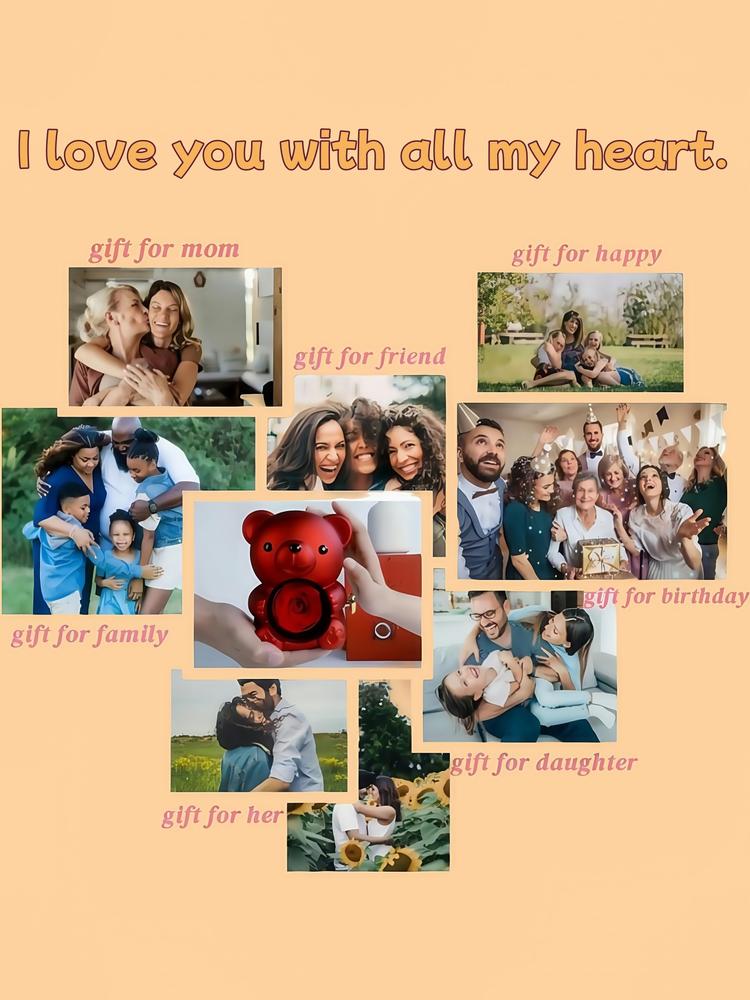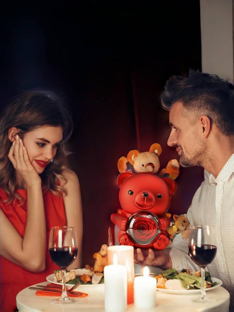 Women's Elegant Heart Design Pendant Necklace with Bear Shaped Rose Gifts Box, Exquisite Trendy Pendant Necklace, Chic Jewelry Set for Girlfriend