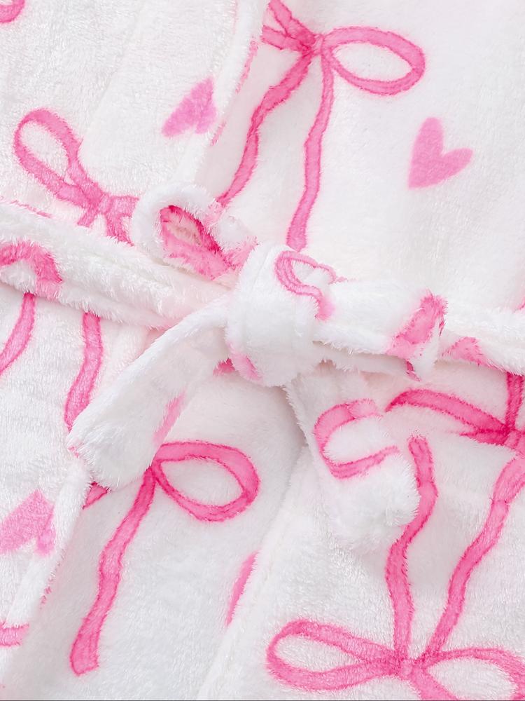 Women's Plush Flannel Robe, Butterfly Knot Print, Soft Comfortable Long Sleeve V Neck, Winter Fitted Home Wear, Holiday Party, Loungewear