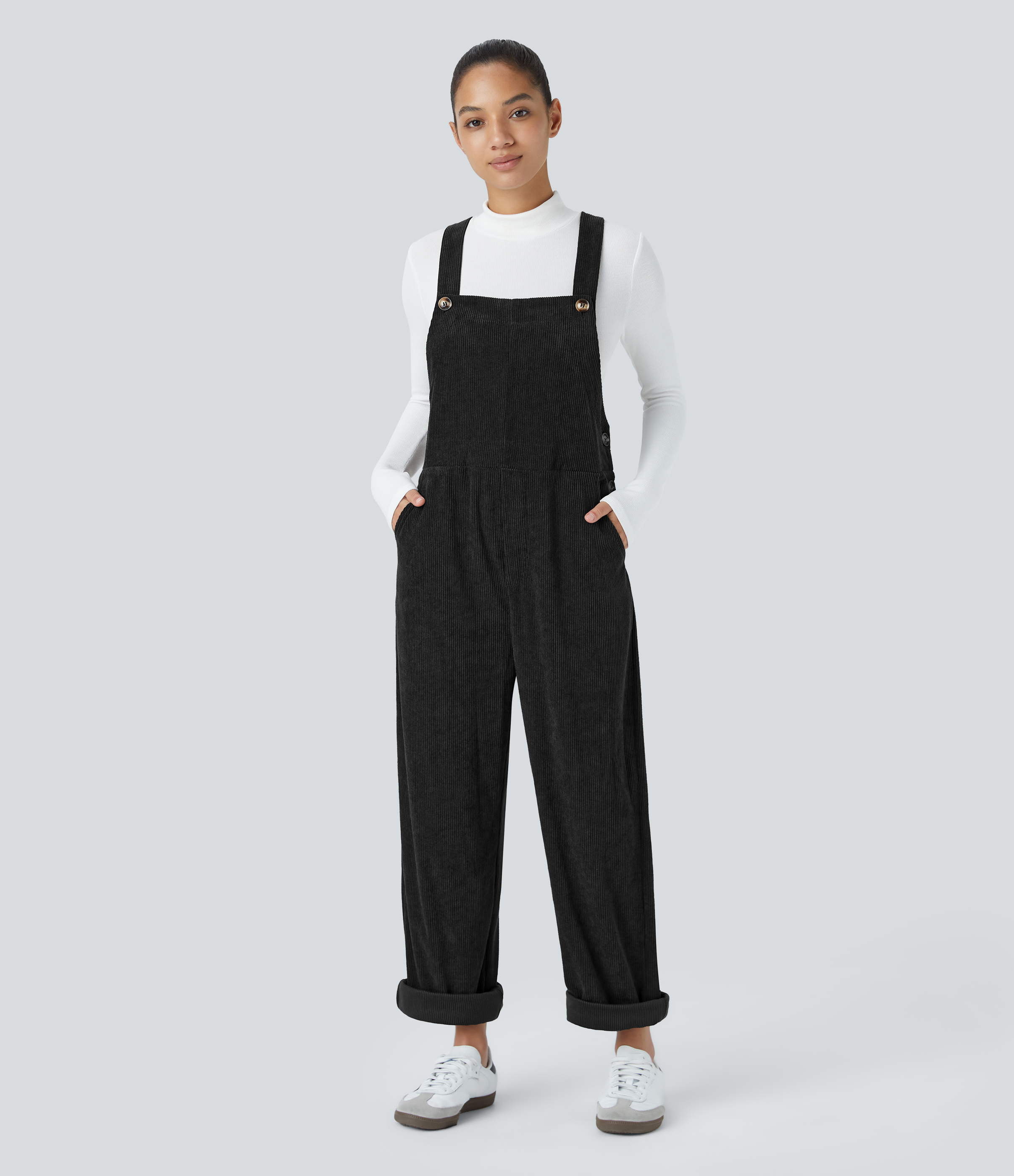 High Waisted Straight Leg Corduroy Casual Pants with Pockets